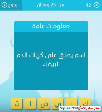 جواب اغز اسم يطلق على كريات الدم البيضاء 23 رمضان من لعبة رشفة رمضانية صقور الإبدآع