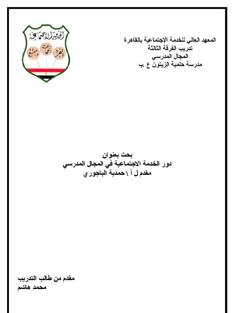 بحث عن المشكلات المدرسية ودور الخدمة الاجتماعية