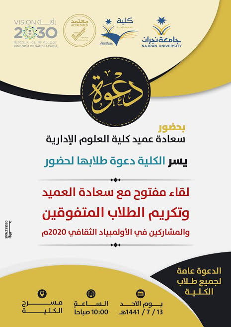 Najran University كلية العلوم الإدارية تلتقي بطلابها المستجدين وتكرم المتفوقين إعلانات الجامعة