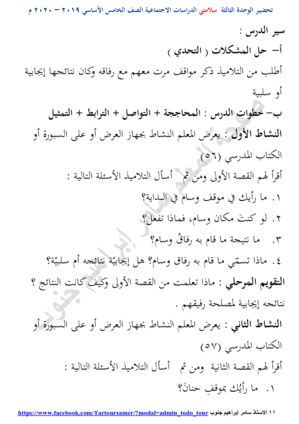 تحضير الوحدة الثالثة سلامتي في الدراسات الاجتماعية للصف الخامس الفصل الاول 2019 2020