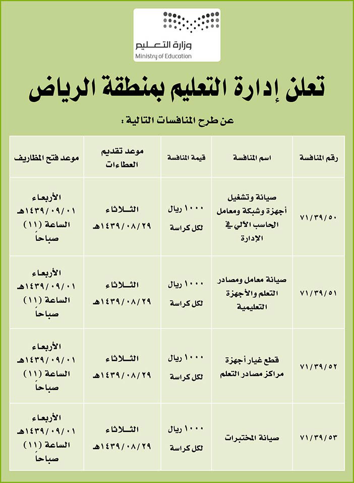 اعلان من ادارة التعليم بمنطقة الرياض