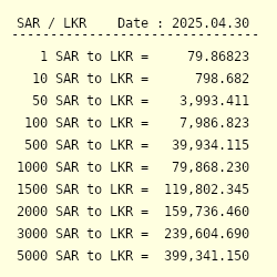 1 Saudi Riyal Sar To Sri Lanka Rupee Lkr History